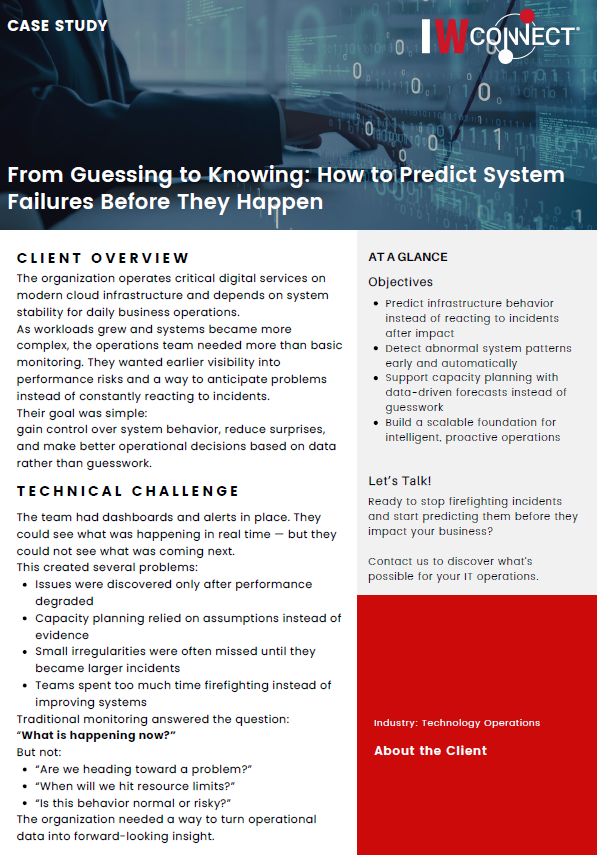 Modern digital systems generate huge amounts of operational data, but most companies still react to problems after they happen. This organization wanted to move from firefighting incidents to predicting them in advance.
