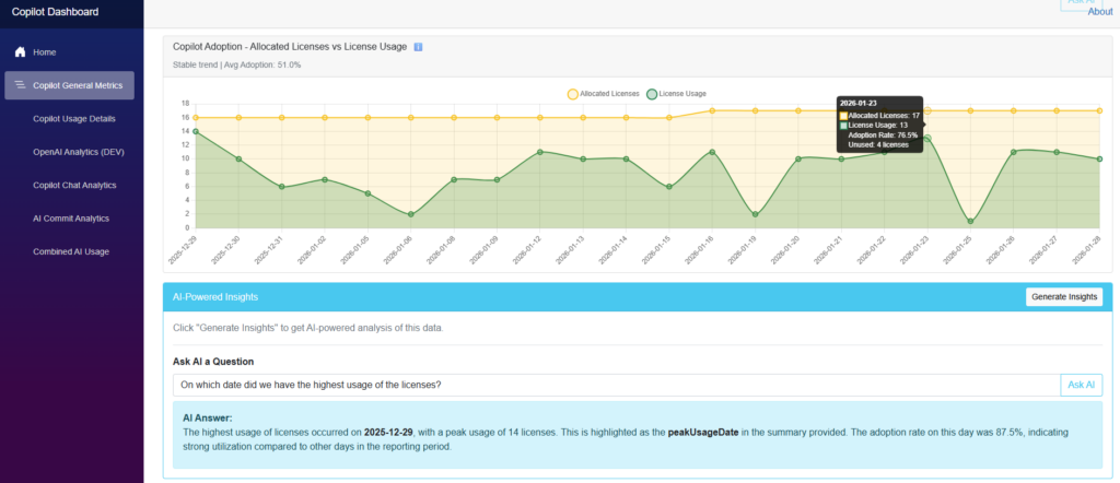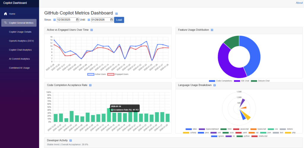 Our GitHub Copilot Metrics Dashboard represents our commitment to this approach. It’s not about restricting AI usage – it’s about ensuring we adopt these powerful tools in ways that align with our values, serve our clients, and position our teams for long-term success.